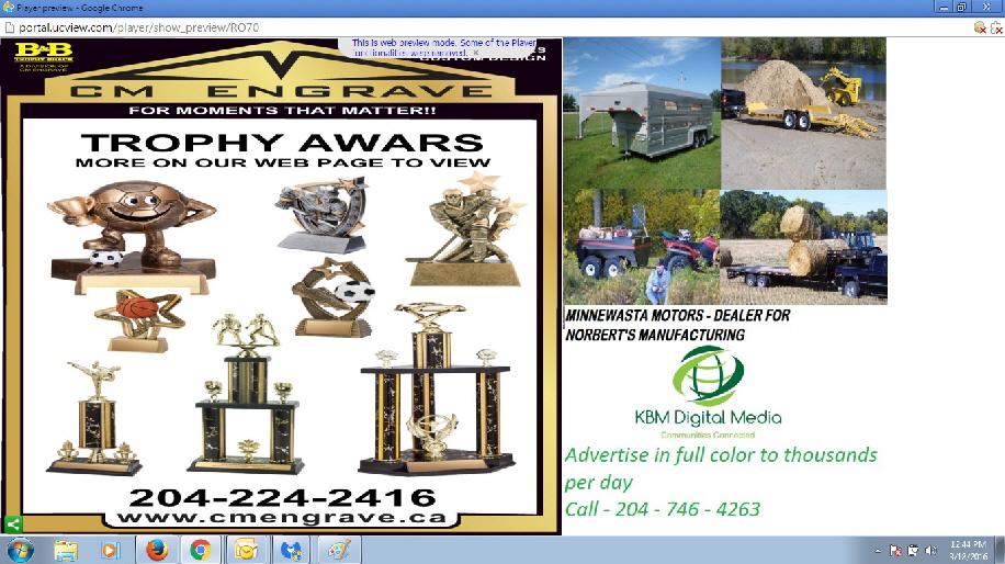 The reason for our contact with you, is to ask if you would be interested in supporting this partnership. As a supporter you get a business card ad in the local newspaper (the Manitoba Sports Network Page) and a full color ad on our digital network (ad in Morden, Winkler, Altona, Morris and Carman).
